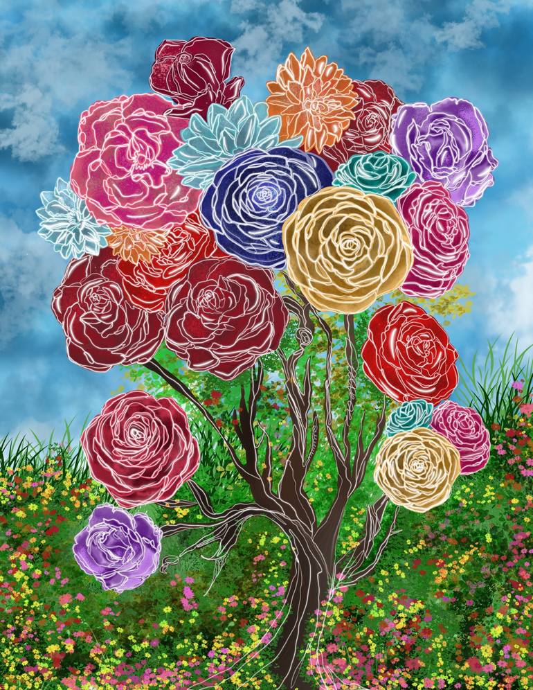 Whimsical Botanical Bliss" merges abstract expressionism with the serene beauty of a floral Eden. This digital painting invites viewers into a vibrant garden where creative imagination blooms. Layers of symbolic art depict a lush tapestry of flowers in a whimsical composition, celebrating nature's i...