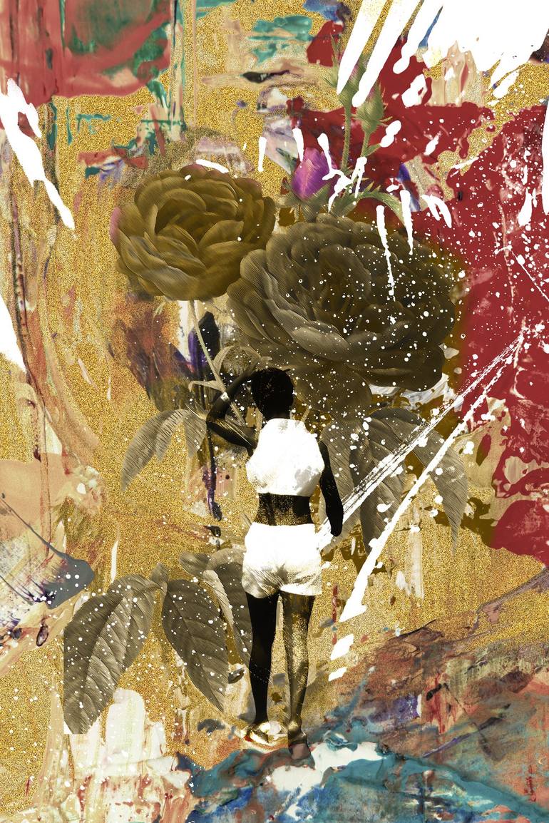 I want to talk about beauty, feelings, life stories, and contradictions—everything that makes us human. The central focus of my creations is the emotions that are omnipresent on this planet, regardless of creed or language; even before we learn to speak, we already demonstrate emotion. I explore not just the 'noble' feelings, but any and all feelings expressed in the contemporary world, amidst the intersections of social media, television, film, and music. Conveying strength, beauty, and everyday life through characters and their clothing, I use abstraction to show that reality is malleable. It may take decades to change, but it is real. The flowers present in all my works—whether featuring a character or a piece of clothing—convey emotions, dreams, and the hope of changing the reality of a community or oneself, recovering one's beauty and self-esteem. My artistic motivation stems from a dream common to every child of my social background: to change our family's situation and give them a better life. In art, I found this opportunity. Initially, I created to deal with my reality and my disillusionment with the academic world. Art called to me; I had to do it, even without fully knowing what I was doing at first. Nowadays, my art deals with emotions by creating images of people who, in Brazil's not-so-distant colonial past, were denied them, producing anguish and pain in their bodies. I recognize myself in an environment that remains largely unchanged—both at the university I attended and when walking down the street—feeling a certain strangeness in places where I still feel I don't fit in. My art is a way of resisting this. Resisting and reclaiming my humanity is what motivates my creation, even though during the colonial period this was stolen from my ancestors: Native Brazilians—the original people of South America—and Africans brought here against their will. My proposal is to work with the emotions of the body marginalized by colonization, creating an image that represents the beauty of these bodies, their contradictions, and their hopes. These are the same bodies described by colonizers as 'savage,' devoid of feelings or emotions. I portray how culture intersects with us and interferes with how we interpret and deal with the emotions that arise. Even if our hopes and dreams are ripped away or manipulated by algorithms, television, or other forms of communication, the emotions that arise are still as present as the dead flowers in my work.