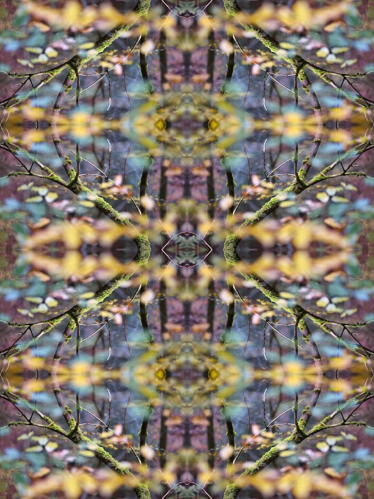 A moss-covered branch among colorful leaves, photographed with a wide aperture. This transformed the leaves into colorful blobs, with only the branch clearly defined. As a musician, I often use the repetition, mirroring, and rotation of motifs from J.S. Bach's musical composition technique in my com...