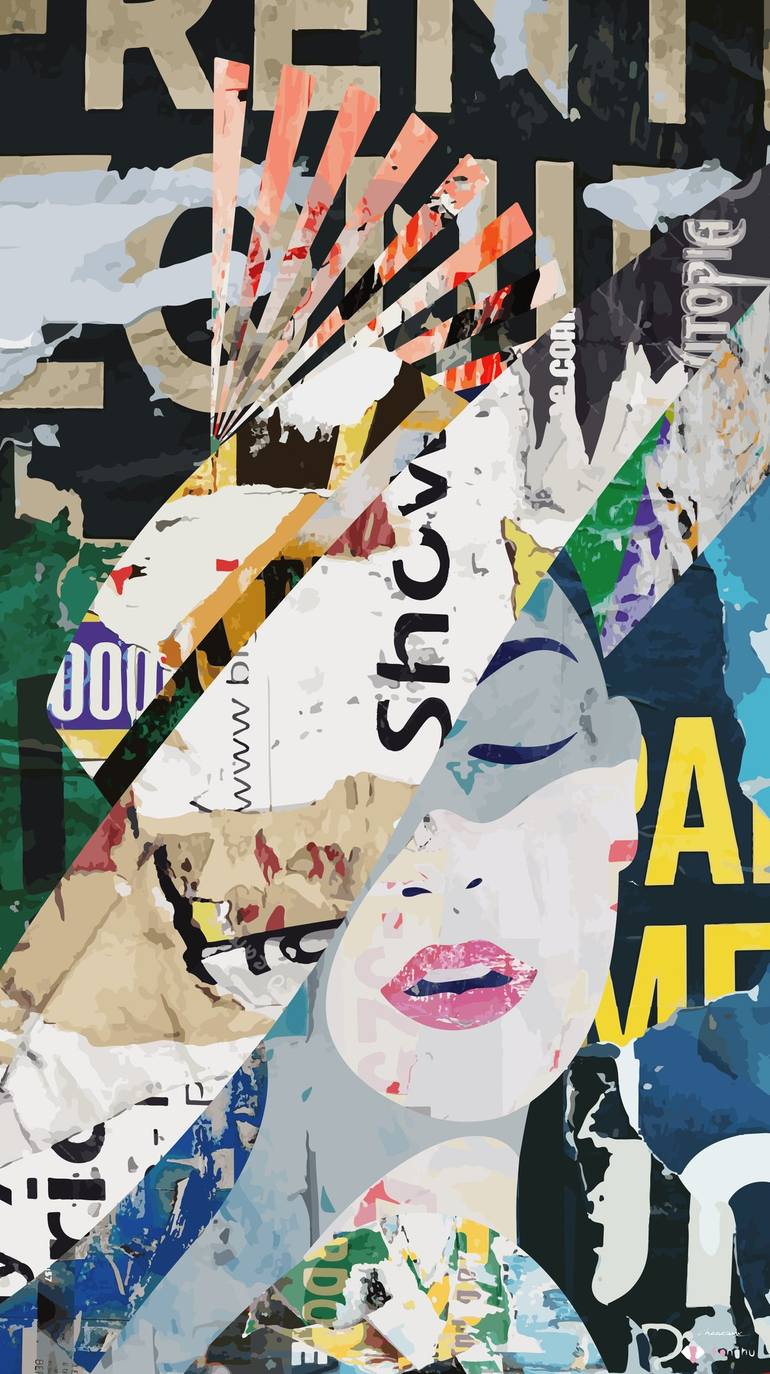 I paint mainly subjects of famous people, celebrities, and icons of pop culture and fashion; faces, figures, comics. My artworks are a combination of Pop Art and Street Art painted on a collage of torn letters from posters and advertisements extracted from the streets, which are digitized and assembled into the final piece. It is definitely modern, radical painting with a visually beautiful language for the viewer. Intense and vibrant colors combine with large splashes of contrasting colors adorned with multicolored French tears. My major influences are Andy Warhol, Roy Lichtenstein, Jackson Pollock, Jacques Villeglé, and Mimmo Rotella. I enjoy working on fairly large formats, ranging from 1.20 to 1.70 meters or larger. I often use different digital techniques, especially when assembling the collages of sources and letters for the abstract backgrounds with torn pieces of paper. I feel a certain fascination for these street paper letters from our poster culture; they function as small testimonies of what surrounds us, and each person randomly interprets them to evoke personal feelings or memories. Taking these letters and fragmenting them in a completely different context than what they originally present on the walls allows me to offer new expectations of interpretation among viewers. The portraits are digitally created in a monochrome palette of 10 to 30 colors, giving a more elegant and avant-garde look to the artwork. Street art, as well as abstract art, play a crucial role in my work. I am fascinated by working with the aesthetics of letters and fonts from torn posters and billboards on the walls of the streets. They are beautiful in themselves; free, vibrant, spontaneous, colorful, exciting, and without rules. I like to create them digitally so that I have the freedom to express myself and channel all my energy inspired by urban beauty. In my paintings, I try to use various techniques to make my digital canvas resemble a painting worn out by the harsh environment it is in. These street resources or supports are always weathered, scratched, and damaged by exposure to rain and the environment. I strive to make it as close as possible to a real urban landscape where everything complements each other in a single homogeneous composition between the painted surface and the collage of street letters. I always start creating the various layers in a spontaneous way, often using a variety of techniques such as collage, painting, and spray drips.