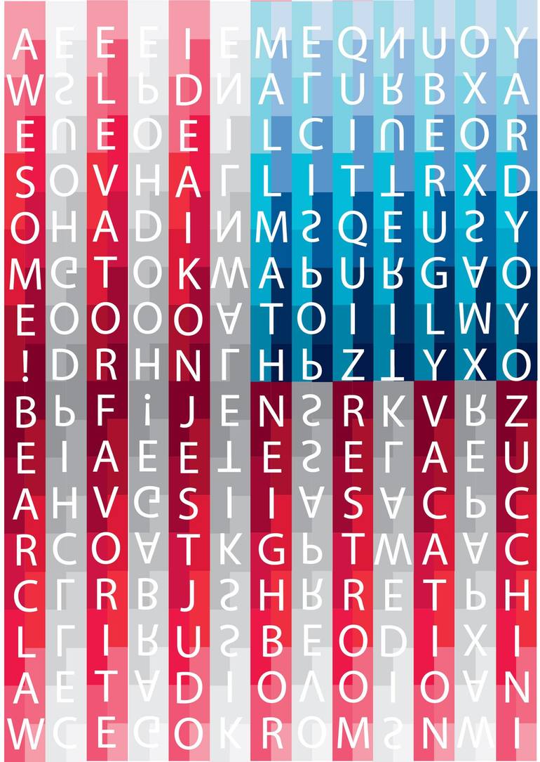 Do you Speak American English? (Four/Eight letter words on American Flag) on A3 Plus Paper Currently on display as part of the Flags of the World series 2024 Visions Anima Mundi Venice Italy Exhibition 2024 NOW ON 7th June - 21st June 2024 Palazzo Albrizzi-Capello Associazione Culturale Italo-Te...
