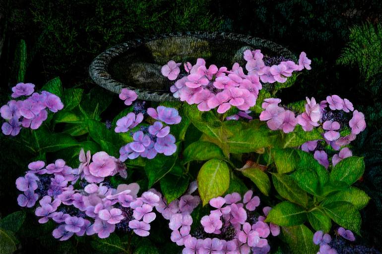 Beautiful Hydrangeas surround an old bird bath in our garden with added textures and painting techniques to create this Artwork ... My art is based on the mixing and blending of textures, grunge & painting techniques with my images until I feel the image has the look I was trying to achieve a...