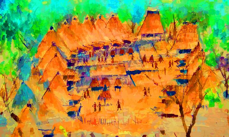 Digital painting from edits Watercolor painting on tissue paper. Image of the traditional village of Flores, East Nusa Tenggara, Indonesia. I love painting on unusual media, like tissue paper. Tissue paper has a high water absorption capacity, so it requires instinct and skill to control its water a...