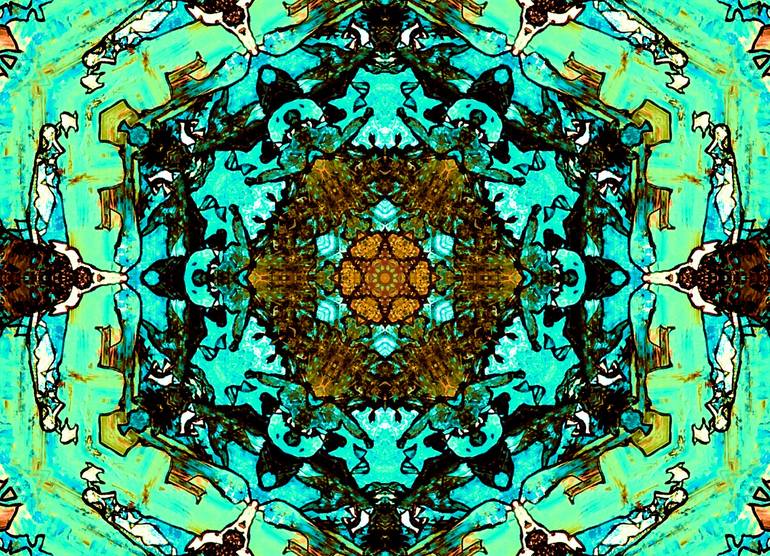 Beautiful and vibrant green fractal mandala art made with mixed media and digital algorithms that bring a completely unique dimension to your decor. The kaleidoscopic image in green induces a sense of calm and peace and brings on a meditative state of mind