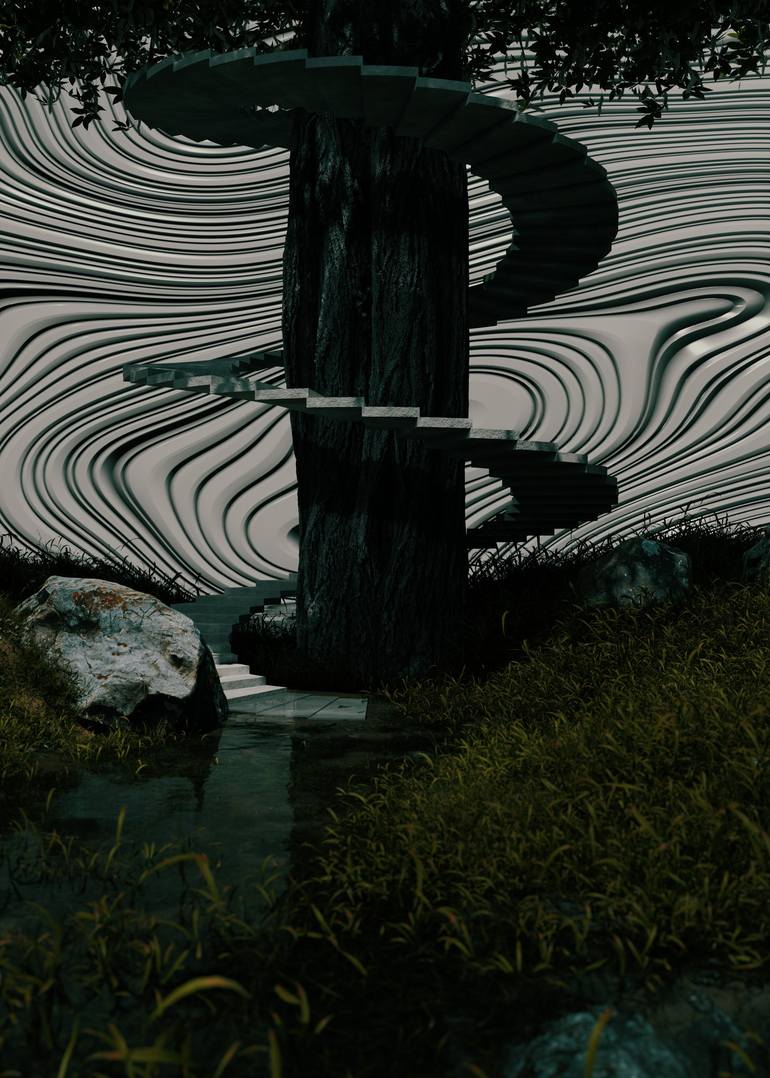 Its Upstairs 3D Surrealism Render Artwork UPSTRAITS TREE