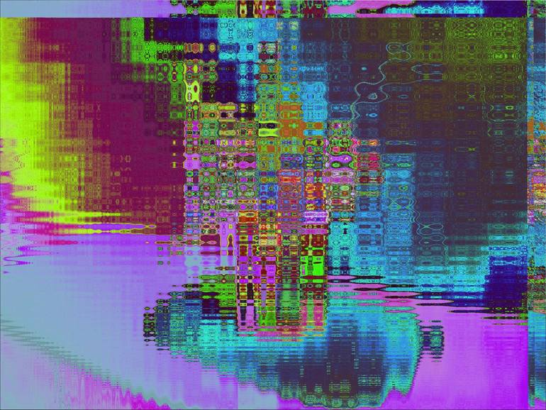 I make my art by manipulating linked sets of equations in a large software program I have created. The mathematical "brushes" and "paints" allow me to rearrange and transform real world images at a microscopic level. This is another cellular work derived from a vase of silk flowers arranged by my la...