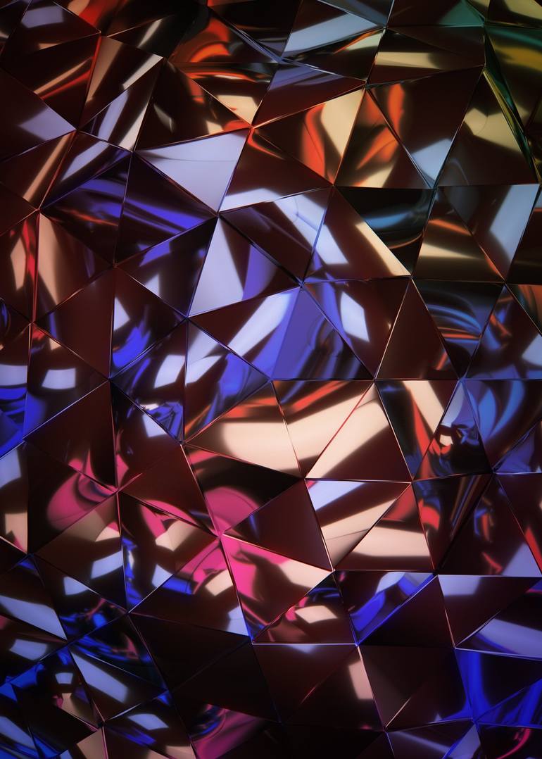 This image is a interpretation of the fragmented nature of perception and reality. The interplay of vibrant hues and sharp geometry speaks to the duality of the observation and what is being observed.