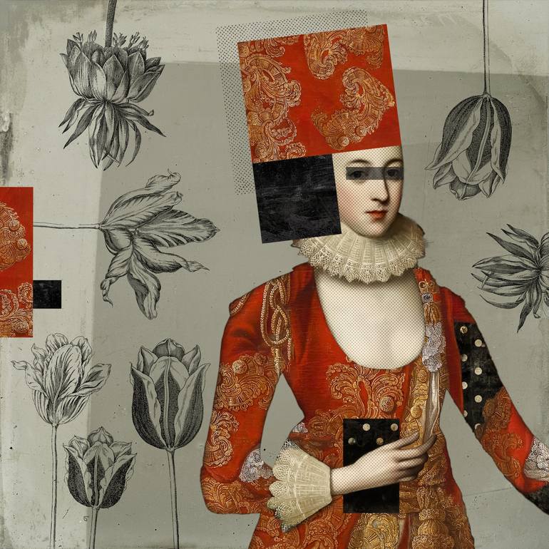 In this work, I passionately woven timeless emotions and a tribute to the baroque era. The use of digital technology allows the figurative to merge with geometric elements, evoking a dialogue between past and present. Flowers, symbols of ephemeral beauty, contrast with the rigor of forms, inviting r...