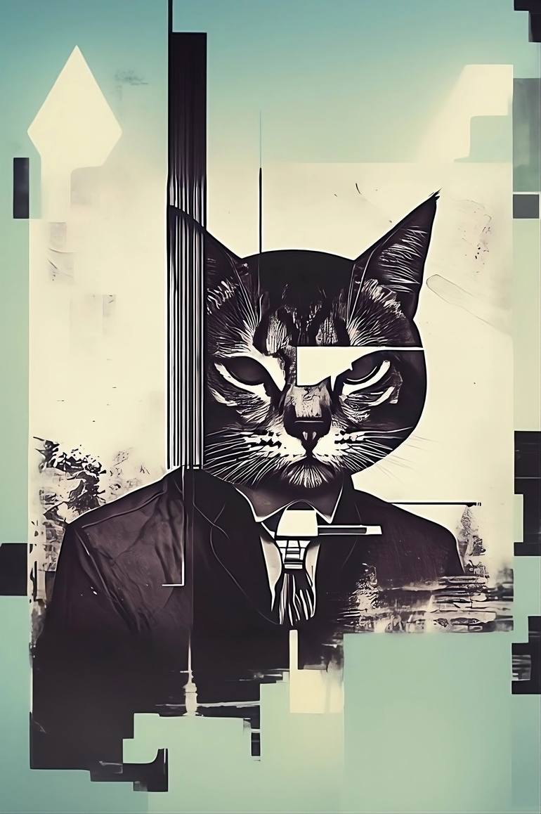 "Le chat noir" is a digitally created artwork, brought to life with the assistance of artificial intelligence. This piece of art was born from a unique blend of keywords, including "cat, man, capitalism, pollution, construction, deception, cuteness, image, dissociation, simulation, and control." It ...