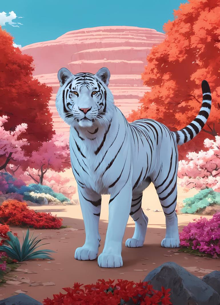 In the heart of the jungle, fierce and bold, Lies a majestic guardian, strong and untold. Emblazoned in gold and black stripes, A tiger painting that sparks awe and delight. With piercing eyes that pierce the night, He stands tall and proud, a fearsome sight. His roaring silence speaks volumes of p...