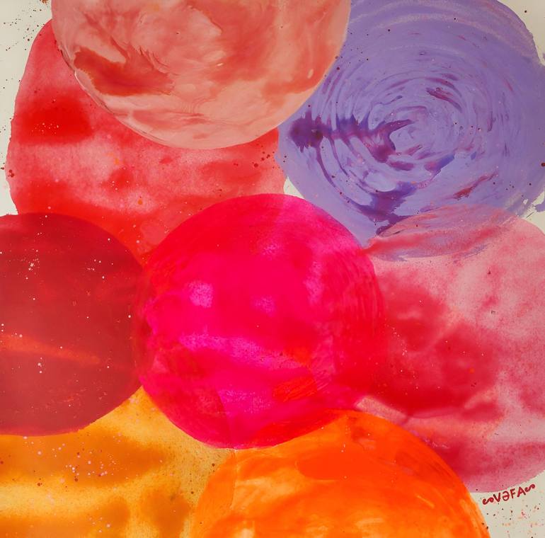 "Meditative Planets"is an enchanting original art print that features a kaleidoscope of rich hues—radiant reds, soft pinks, deep purples, warm oranges, earthy browns, striking magentas, and lively fuchsias—each mesmerizing circle represents a unique portal, inviting you to journey inward and explore...