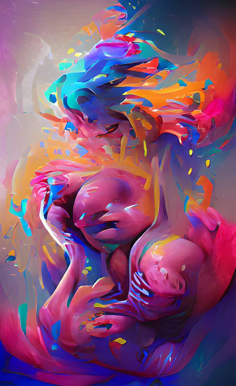 Mother's Love represents a birth, the first time a mother holds her child. It represents emotion and true love and a first touch, the natural touch of life! In the painting I can't only see a mother holding her child, but I can also feel all her emotion highlighted in the colors and shapes! A woman ...
