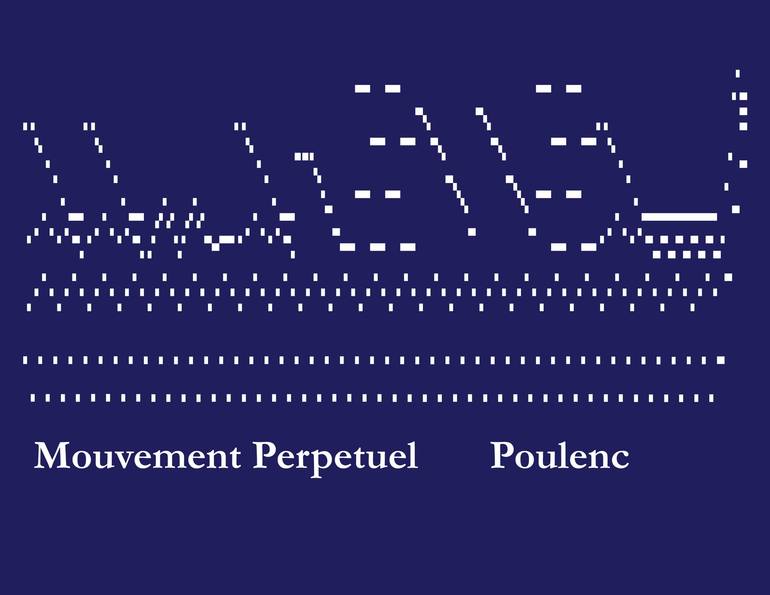 Audioparitura or music graphic of the song Mouvement Perpetuel by the French Modernist composer Francoise Poulenc. This show the upper melody against the hard driving insistent lower harmony. This a color plate from my book Music & Geometry.