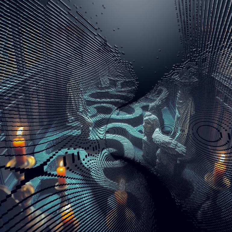 NON SENSEology A ritual of fractured logic and sacred code — where candlelight flickers through a digital veil, and stone angels drift in the syntax of collapse. Architecture glitches into dream. Meaning dissolves.You remember nothing — and feel everything.