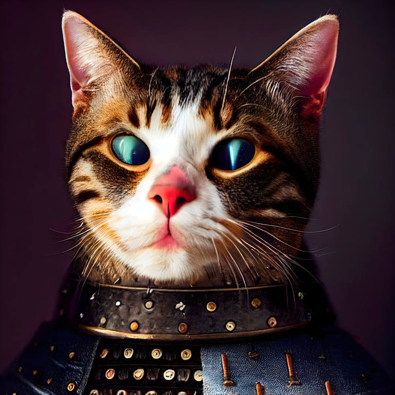 Have you ever seen a cat with ready for battle in armor? Well, this is it. Our armored cats line is here to protect you from any intruders! This artwork of our cute 4-legged friend wearing a hat was created using cutting-edge technology by combining neural networks and artificial intelligence over ...