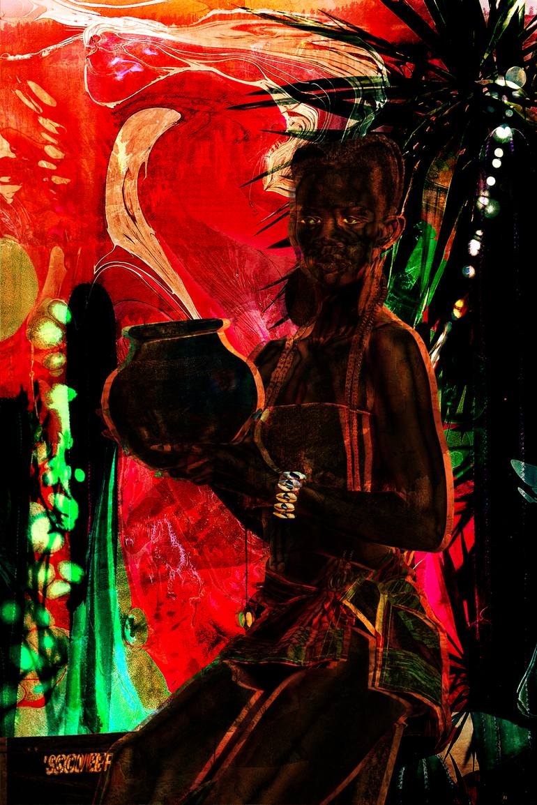 The Umbanda religion of African origin that represents this collage. This work is digitally produced, its physical appearance is on canvas, 100% cotton, with mineral pigmentation paint and anti-mold treatment, it has gallery and museum exhibition quality with a durability of 200 years. The quality ...