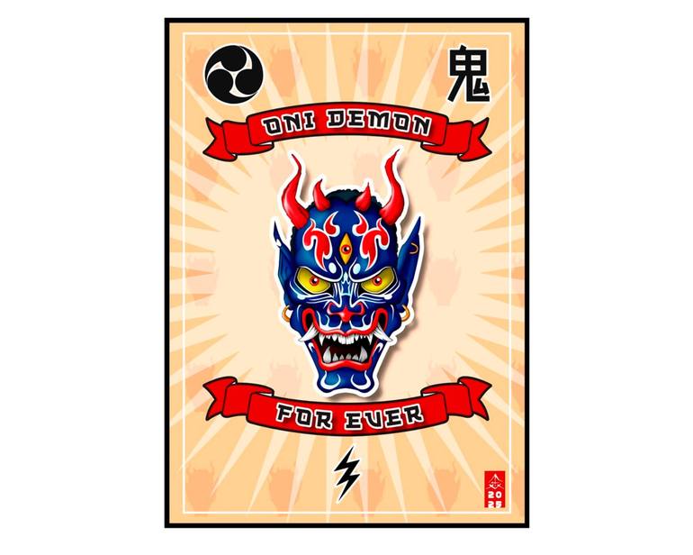 Ilustración digital. “Los oni (鬼?) son criaturas (yōkai) del folclore japonés que comparten muchas similitudes con los demonios y ogros occidentales. Son personajes populares en el arte, literatura y teatro japoneses. Los demonios Oni se reflejan en estas máscaras que simbolizan, precisamente, la c...