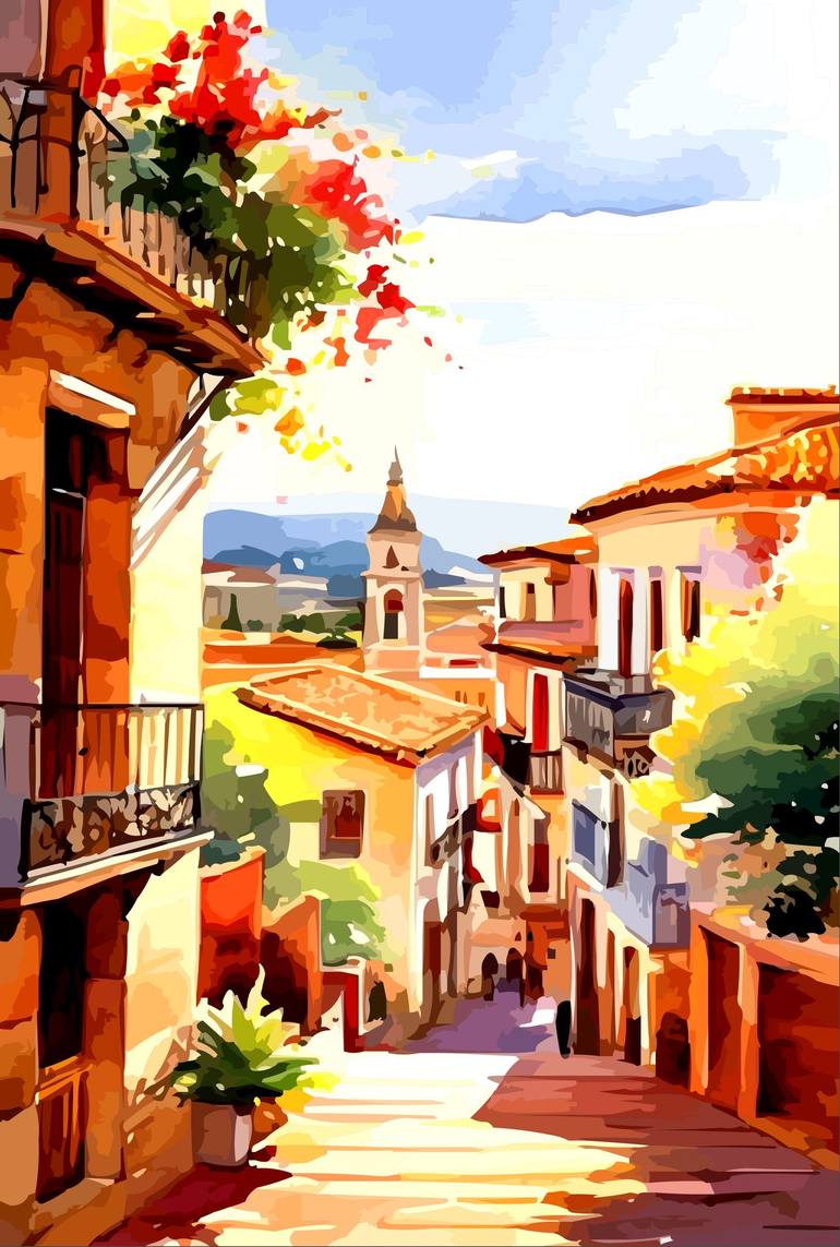 Name оf the Series: "Sunset Serenity: Spanish Street Scenes". Step into the tranquil ambiance of "Sunset Serenity: Spanish Street Scenes", a collection of six watercolor paintings capturing the essence of an old Spanish town on a hot, sunny day. With meticulous attention to detail, the artist bring...