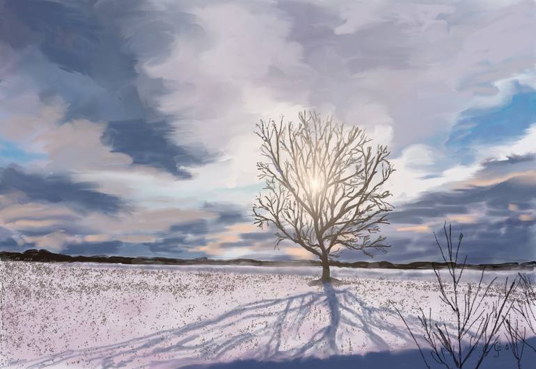 This image is a digital painting created by me using traditional techniques, but on an electronic tablet. For this painting, I started with a blank canvas and was inspired by a photo taken during one of my hikes in the countryside looking for subjects. As in almost all my works, I adapted my referen...