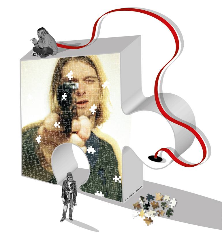 This artwork is a tribute to Kurt Cobain, representing the link between life and death. How little by little his life is wearing away without anyone being able to prevent it.