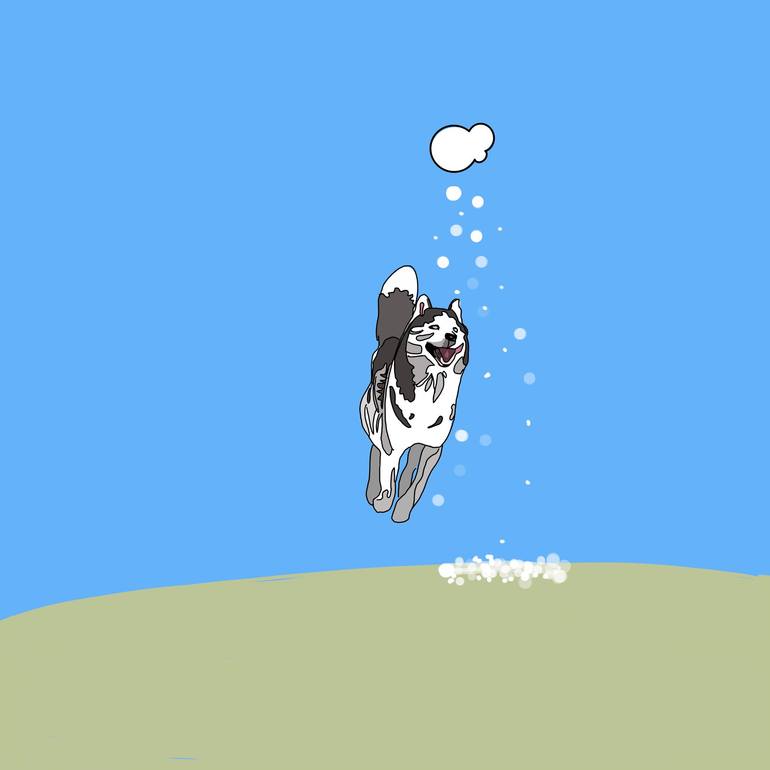 This piece was inspired by the imagination of capturing both the warmth of summer and the chill of winter snow simultaneously. It features a Siberian Husky, who loves snow, leaping joyfully towards the falling snow from a cloud, set against a summer sky. The single cloud releasing snow symbolizes th...