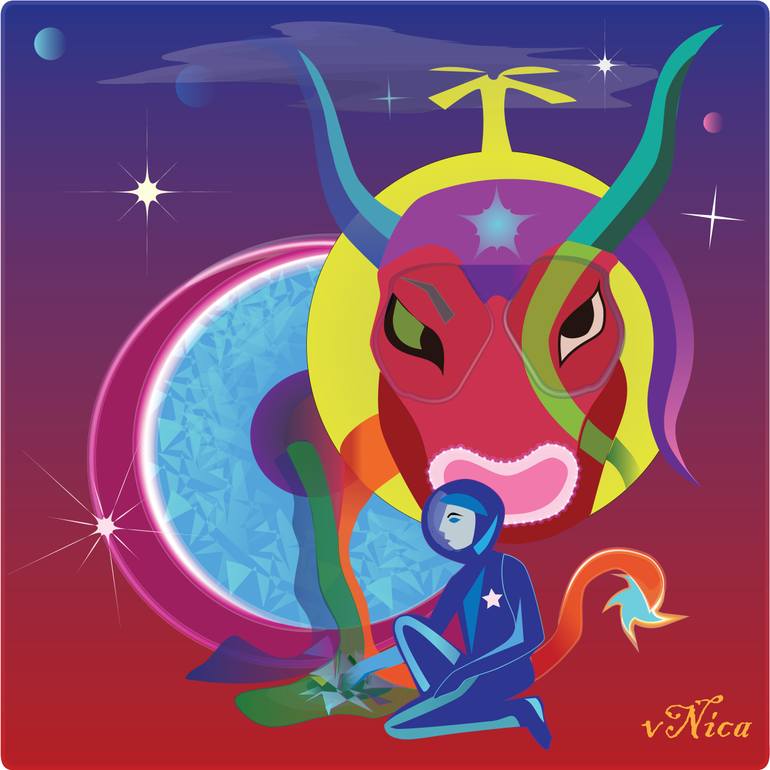 This is an illustration for my Astrological Forecast 2021 — Space Aviator Ox, which was published on the ArtUrania website.