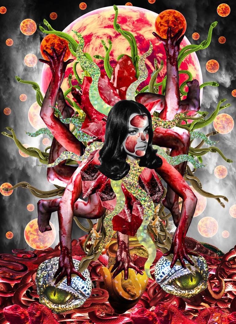 Digital collage, 2021. Medusa and spider in the same body of desire and fear intertwined. Haunted house of the Self, caught in the whirlwind dance of blind infinity.