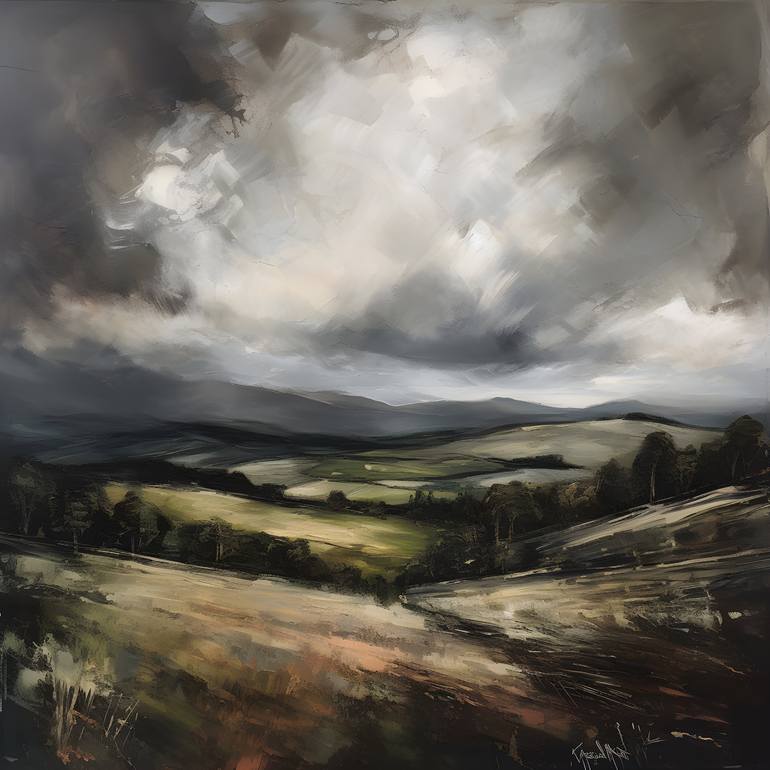 Inspired by the raw beauty of untamed landscapes, this piece emerged from my fascination with nature’s quiet power and fleeting moments of light breaking through stormy skies. I aimed to capture the tension between serenity and drama, using bold, textured brushstrokes to carve out rolling hills an...