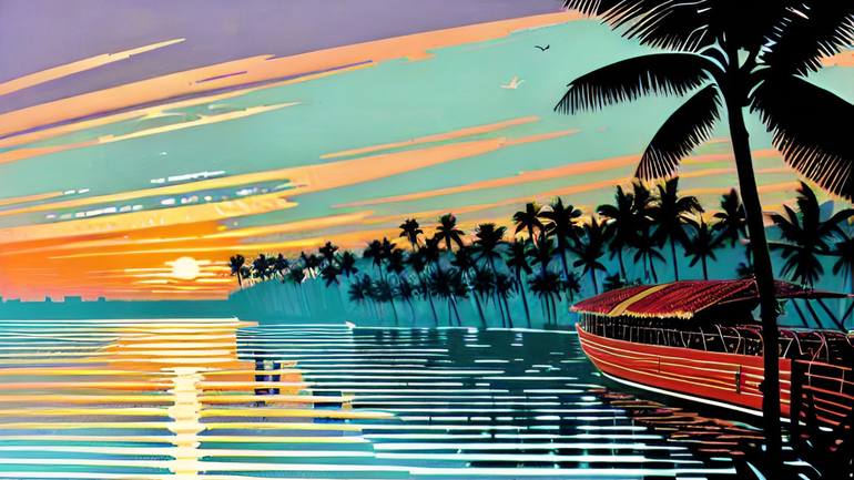 Tonight the sun has died like an Emperor… great scarlet arcs of silk… saffron… green… crimson… and the blaze of Venus to remind one of the absolute and the infinite… and along the lower rim of beauty lay the hard harsh line of the hills… This is one of a kind painting, an impulsive, coolest, and un...