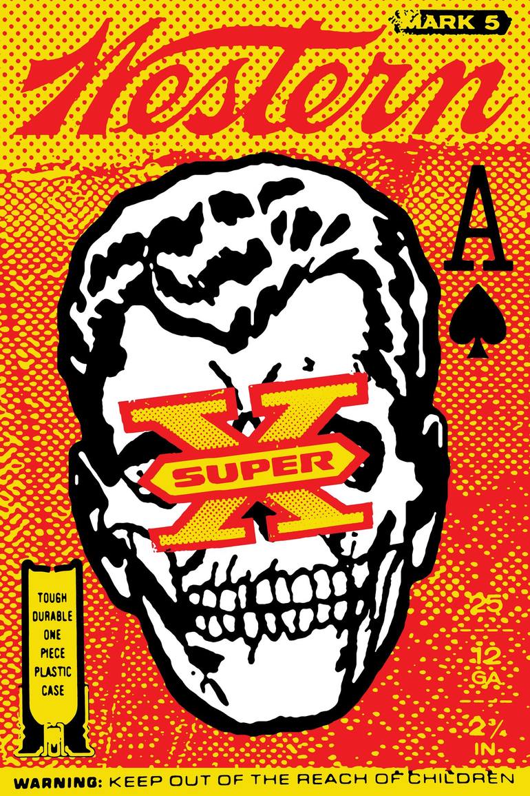 Harnessing the vibrant colors and bold imagery of Pop Art, 'Super X' juxtaposes playful aesthetics with a more serious nature. This striking piece highlights the tension between visual appeal and the object’s grim purpose. Presented in a detached manner, it invites viewers to reflect on its deeper i...