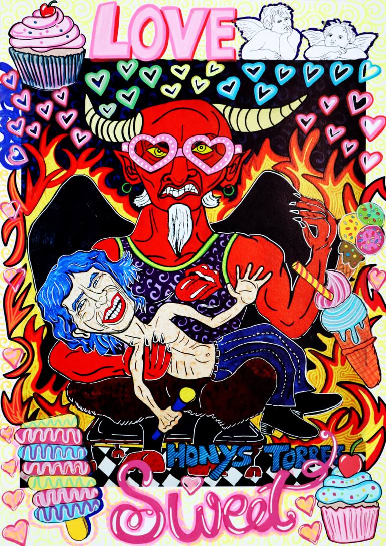 Sweet Digital collage, 2025 – Honys Torres Sweet portrays Mick Jagger, frontman of the Rolling Stones, as a pop icon sweetened by new generations. Since the band proclaimed themselves Their Satanic Majesties in the 1960s, Jagger has embodied provocation, spectacle, and rebellion. His voice, felin...
