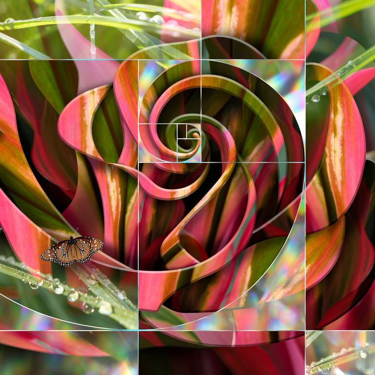 Transcendence Collection In this collection, I’ve paired sacred geometry as it manifests in the natural world with the symbols that represent the energy patterns that create and unify all things. This design represents a rose and the spiral pattern of the bloom. I’ve used photos of a red leafy pl...