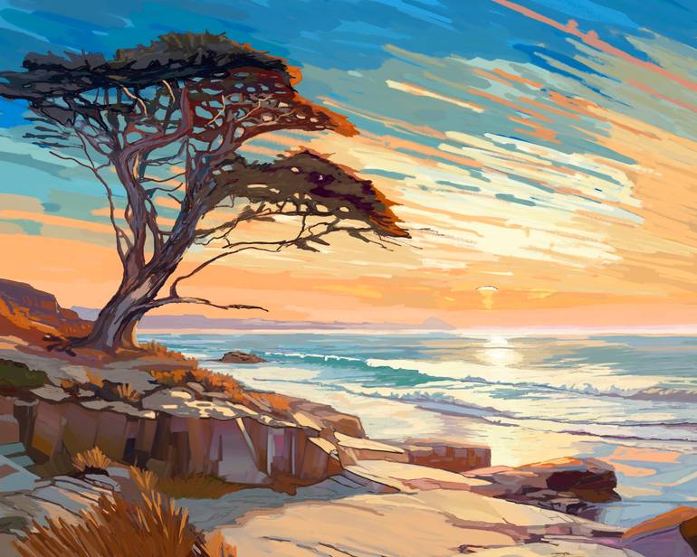 This painting was inspired by my many trips to Southern California. It is what I imagine a perfect sunset would look like.