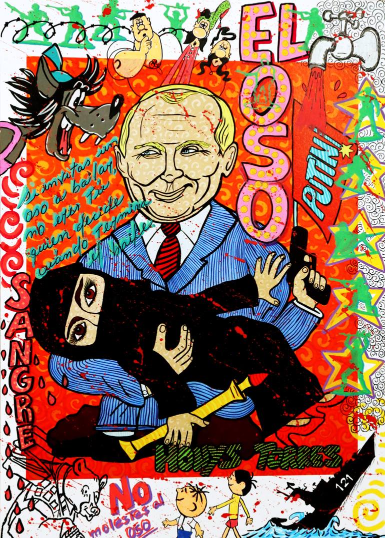 The Bear Digital collage, 2025 – Honys Torres The Bear is a fierce critique of Vladimir Putin’s expansionist power. From Russia’s military intervention in Syria, launched on September 30, 2015, to the full-scale invasion of Ukraine on February 24, 2022, the piece denounces a ruthless policy disgu...
