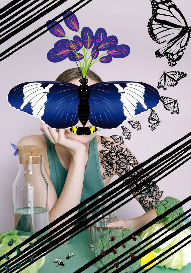 "Butterflies, Photo Elements, Bugs, Veganism, Fashion and Style, and Pop Art all come together in this unique view of the planet. This art piece combines the beauty of nature with the boldness of pop art to create a striking and thought-provoking image. The butterflies represent the delicate balance...