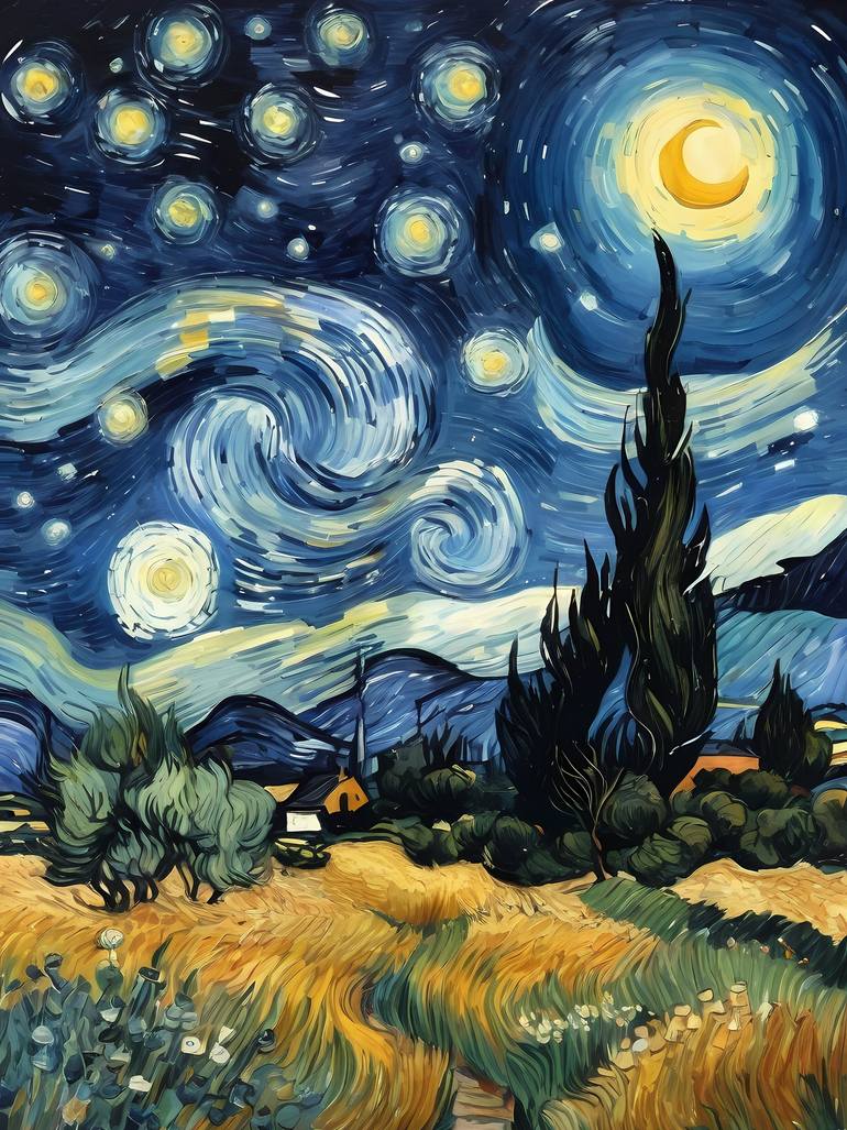 Find the perfect piece for your living space today. Made with museum-grade paper. Matte finish. In the realm of canvases, vibrant and true, A vision emerged, like a morning dew, Vincent van Gogh, master of hues, Created a world, where art enthused. In his art village, brushstrokes alive, Colors d...
