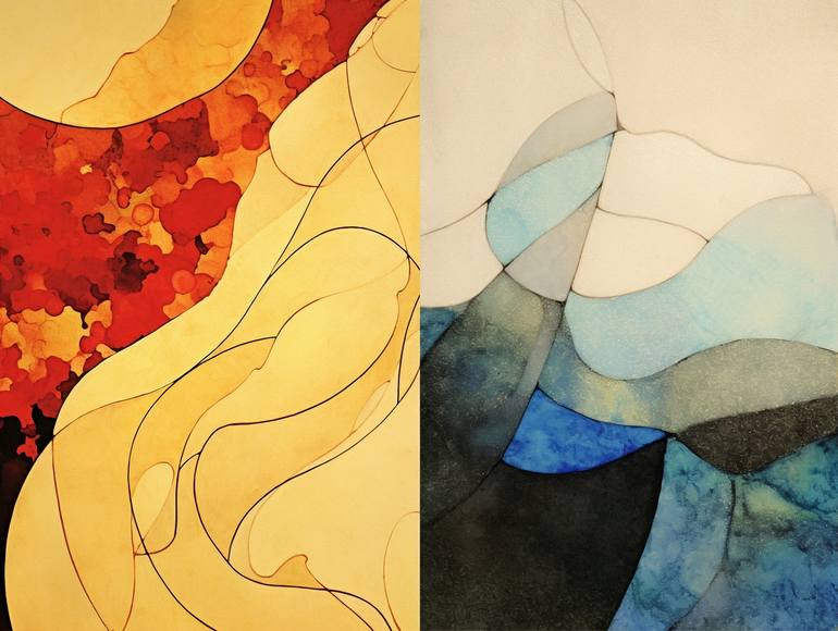 "Waves" explores distinct contrasts. In the first artwork, lava contrasts with ice, creating an intense dichotomy. In the second, energy and movement emerge from the dynamics between small and large. Infused with vibrant colors, the representations invite reflection on the mutability of Nature. Cre...