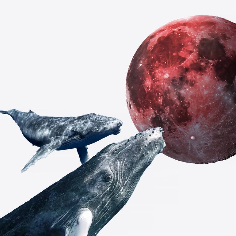 Whales in love is a digital work that explores the connection between love, whales, the moon, the color red, and space. The work was created through the use of advanced digital techniques that allow these elements to be represented in a hyper-realistic way. In the main scene of the work, a pair of w...