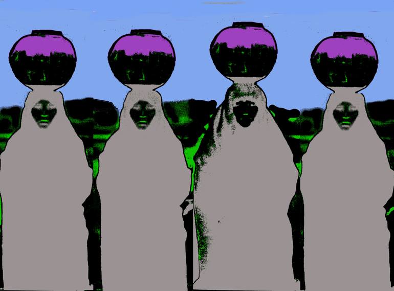 Women With Water Jugs , Blue - Beige, Giclee Canvas, Embellished, Limited Edition #1 of 5 Signed on the back by Stephen Peace, certificate of authenticity. embellished giclee canvas. I print and embellish the art on demand. In other words, I order a giclee, have it shipped to me, embellish it with ...