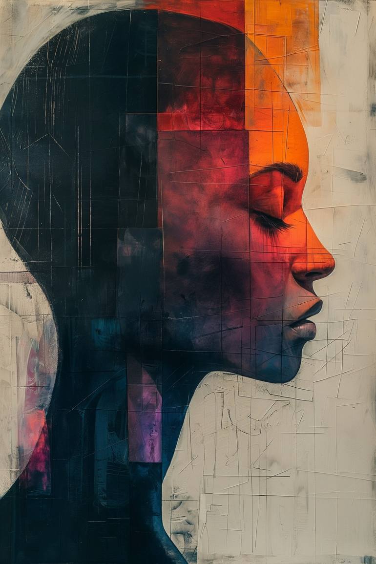 Temporal Fragments🤎 Each geometric segment represents a moment in time, a memory crystallized. The subject's serene expression, fragmented yet whole, speaks to the way we piece together our existence from countless moments of experience. 🟠 (Limited series exclusive)