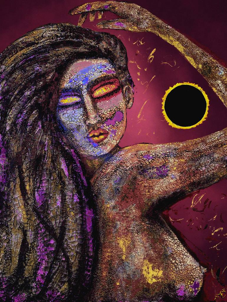 "Multiversal Fine Art" is a 21st Century genre currently in its nascent stage, but on the verge of rapid global expansion. In March 2004, I felt compelled to transition from the business world into the art world, ergo, I purchased $5000 worth of art supplies "on a whim" and decided that this was what I wanted to do for the rest of my life. It was a conscious intent to create something tangible, real, and formidable that became stronger and stronger, and as the months of that year passed, it had become quite clear to me that something was trying to form. The brilliant scientist and inventor of wireless electrical current, Nicola Tesla, said that everything in the universe is divided into frequency and vibration. After painting full-time since 2004, the work now seems to emanate an other-worldly energy, frequency, and vibration that somehow initiates a metamorphic effect on the viewer, resulting in an evolutionary impulse so vitally needed for the transformation and healing of humanity. I am simply a medium, a channel, if you will, for the art that comes through me from higher planes of consciousness. As we become still and gently allow, we find the imagery forming into geometric shapes, sometimes becoming portraits, and other times, remaining hidden behind a veil of abstractions. Some of our collectors have conveyed the artwork radiates a zen-like calming effect on the nerves, allowing them a glimmer of peaceful bliss and tranquility. As an "Urban Shaman," I have learned over the years to take my mind out of the equation when I paint. This allows for trance-like visions to emerge on the surface into multiple layers and facets (reflecting the multiple dimensions) onto abstract imagery, inculcating a synthesis of sacred geometry, metaphysics, quantum physics, mystical symbolism, and Jungian archetypes. For me, each piece in the collection manifests a transformational, healing, rejuvenating effect on my emotional body, affording me an inner awareness of untapped creative abilities. Subsequently, as the Multidimensional Expressionism has evolved over the past decade, I have evolved right along with it.