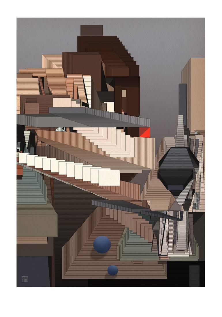 hiddeninthedesert. This is another work that deals with geometric considerations about the world around us. These are scenes from life, scenes remembered from photos, from city walls. All the richness of life, movement, light, and even smell has been reduced to the dimension of simple geometric figu...