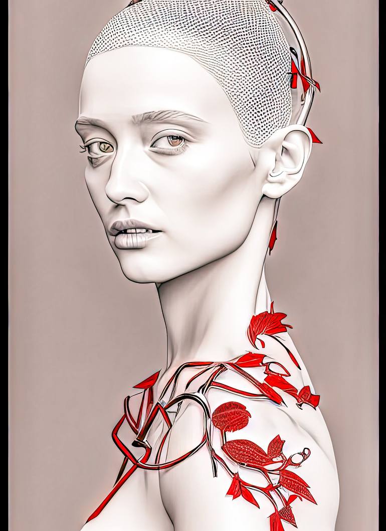 mythical dreamy black and white organic translucent bio-mechanical spinal ribbed profile face portrait detail of mechanical beautiful female steampunk ornate digital art
