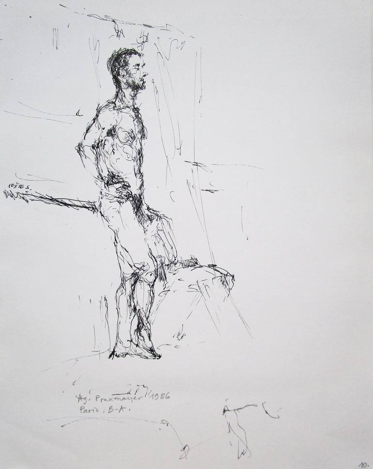 Ink sketch on paper (Daler Rowney) A lovely standing pose from The Fine Art Academy of Paris. (Les Beaux-Arts).