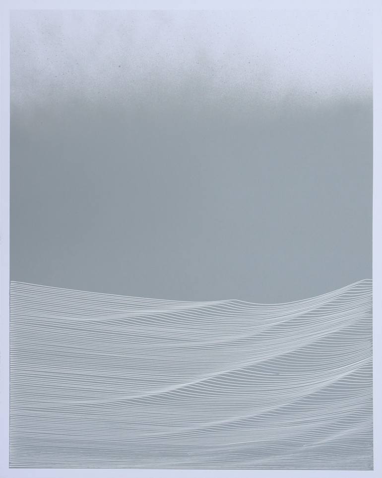 This series of "Exhale" drawings focus on the relationship between the artist and the process. Each freehand line is conducted for the length of one exhale and mimics the previous line. Beginning with the straightest freehand line possible, the "waves" begin to take shape as minor imperfections or b...