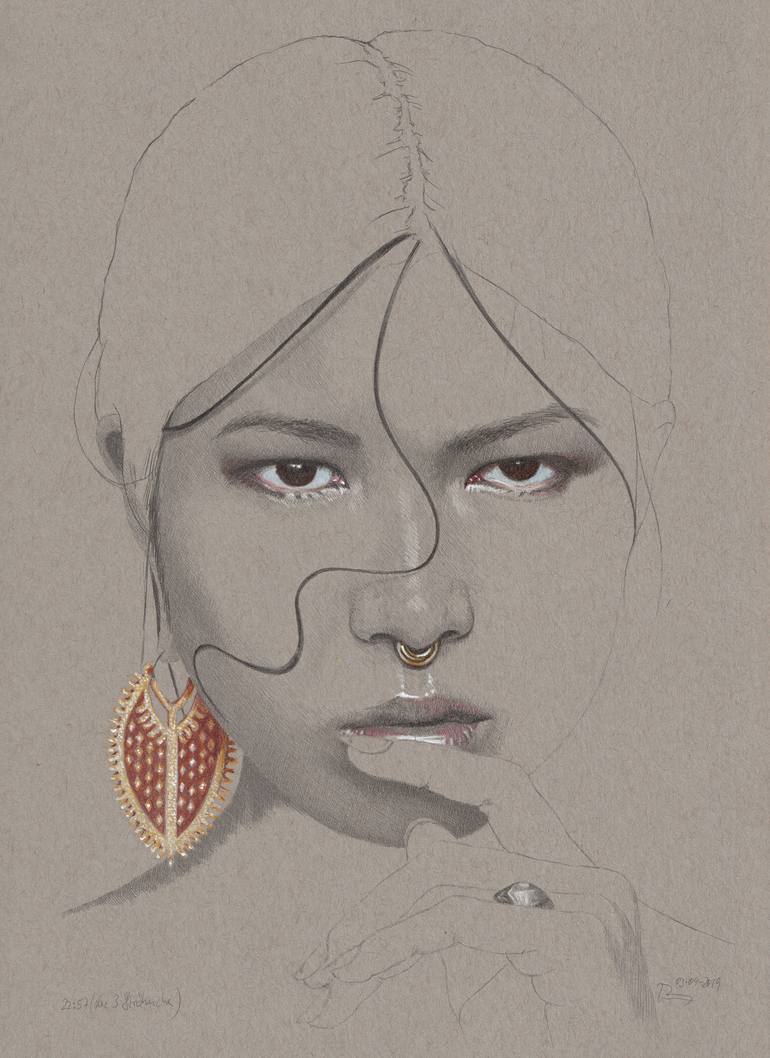I was fascinated in the curls,especially the curl in the middle of her face. The earring is a very well contrast to the line/ the lively bounce to the curl, isn't it? Drawing is on toned Strathmore cardboard.
