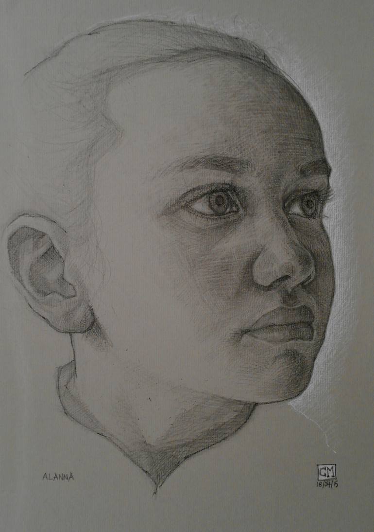 DRAWING OF "ALANNA" , COMPLETED IN CHARCOAL AND WHITE CHALK ON CANSON PAPER