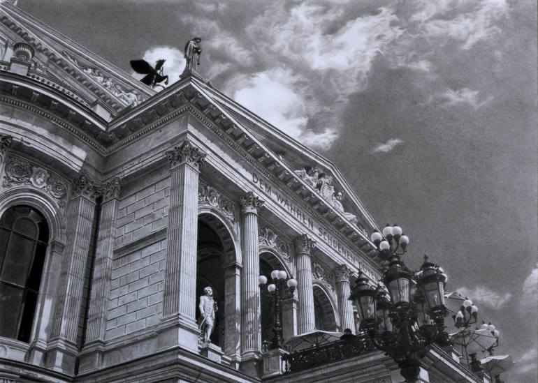 Original Signature : Yes Frame : Yes (Dark Green Surrounded by Gold Lines, with Acrylic Glass) Frame Size : 16.9×20.0in (43×51cm) Paper Size : 13.7×16.6in (34.8×42.4cm) Alte oper Frankfurt is one of the renowned Frankfurt architecture with neo-Renaissance style, which was inaugurated in 1888. It wa...