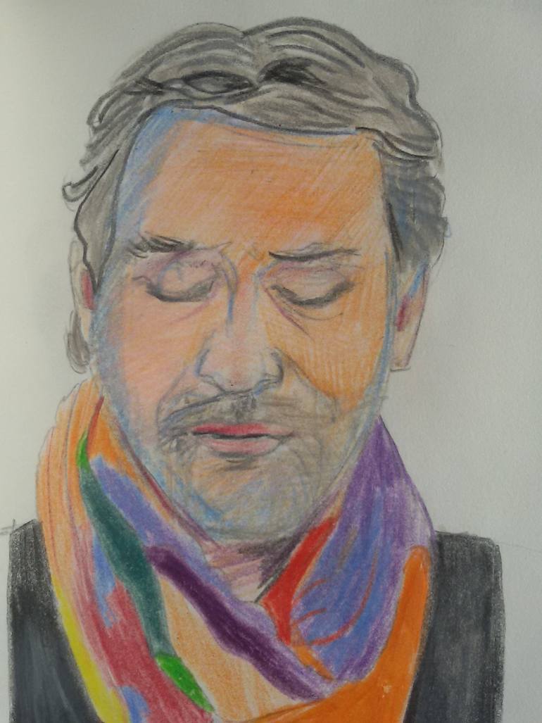 A portrait of the opera singer Andrea Boccelli from Tuscany, taken from a photo of the 2000s .