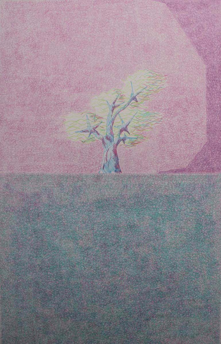 Dibujo de un árbol imaginario en color para favorecer una restauración. Dibujo sobre papel.
